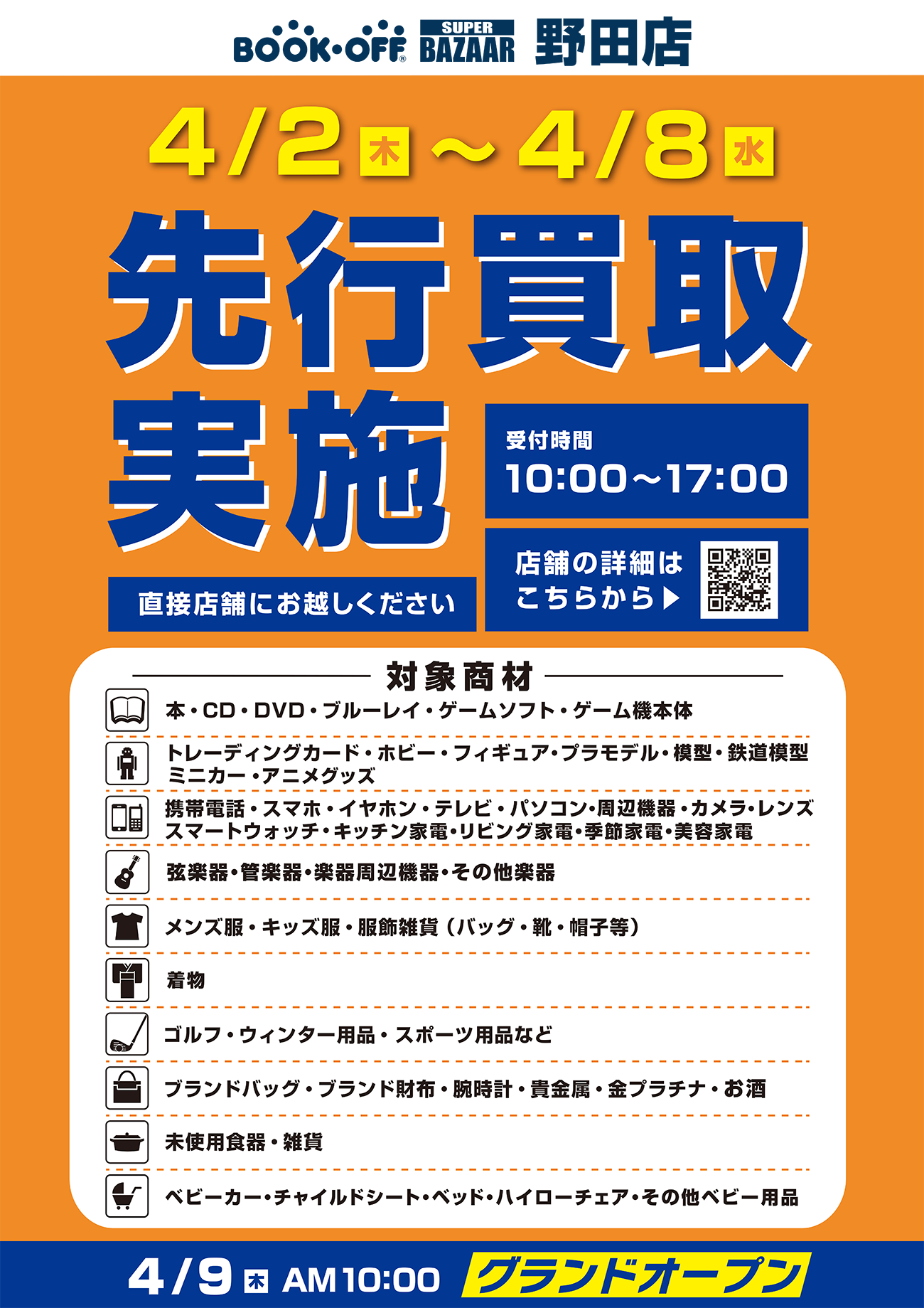 | 買取受付時間 | 10:00~21:00 書籍・ソフト・ホビー |